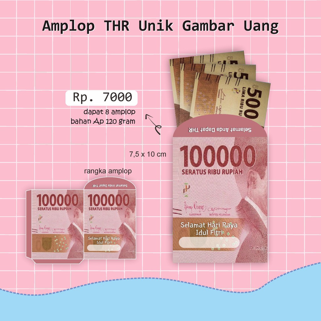 Amplop lebaran gambar uang 100 ribu. Tebak uang Rp 100 ribu dalam amplop tersebut sungguhan atau tidak. 6 Desain Amplop THR Ini Nyeleneh Banget Bikin Terkecoh. Twitter depresionistaa Melihat postingan ini terdapat warganet yang menyeletuk bahwa amplop lebaran tersebut bisa memicu dendam kesumat.